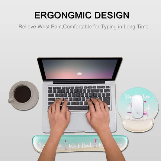 Mouse Pad Wrist Support and Keyboard Wrist Rest, Ergonomic Mousepad with Memory Foam, Non Slip Rubber Base, Waterproof Mouse Mat for Home, Office, Gaming (Stay Positive)